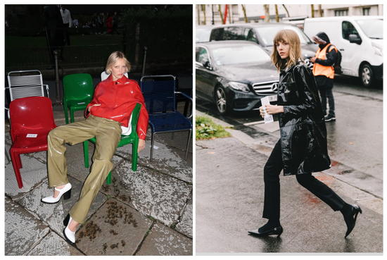 若想强调自我腔调与酷感的特质,漆皮是绝佳选择。它冷峻而犀利的光泽,能瞬间改变整体风格的基调。即使是全身漆皮的大胆尝试,也不会显得浮夸,为造型注入一股不羁的个性。