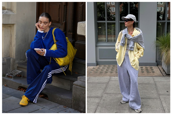 想要实现走路带风的飒爽姿态,一条宽松运动裤便能满足。选择“上细下宽”的阔腿板型,自带的洒脱与休闲的属性,搭配同样宽松的上衣,形成松弛的H形或微A形轮廓,慵懒又充满活力。
