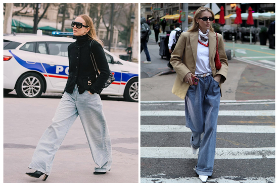 用长款牛仔裤搭配高跟鞋,是打破常规的熟龄智慧。直筒设计、裤管宽松,长度恰到好处的及地,在高跟鞋上形成堆叠。这种“松垮”并非邋遢,而是传递出一种舒适自在的风格。
