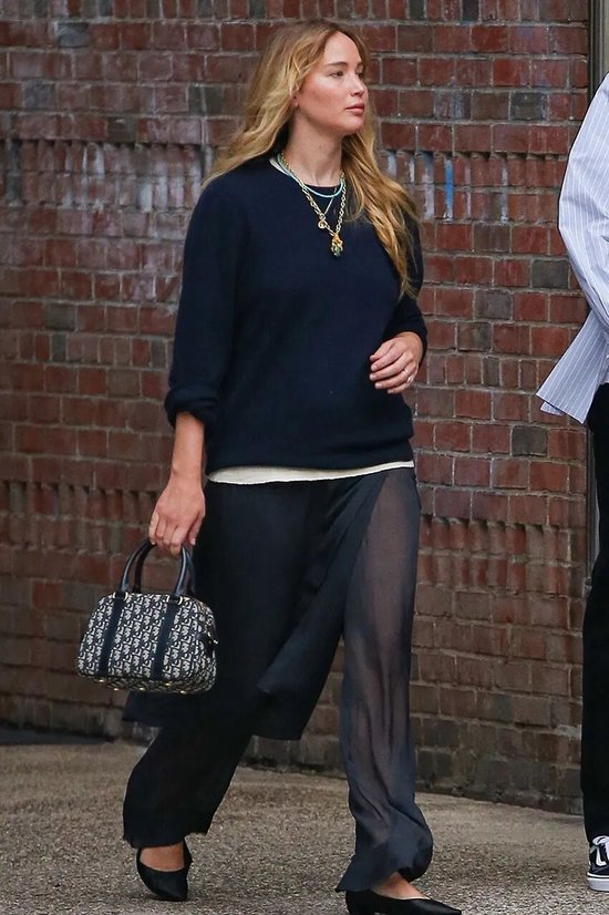 还有成功转型“低调穿衣模板”的Jennifer Lawrence,作为日常私服中The Row大户,The Row的羊绒毛衣各种颜色的基础款式就是最好搭配的单品。
