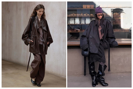 一件廓形风衣外套,是勾勒文艺温柔气质的绝佳单品。它不像传统风衣那般凌厉,从肩部自然垂坠而下的衣摆,用柔和的线条让整体造型都“软”了下来,也更倍增了随性优雅的风格。