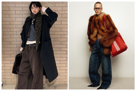 低腰裤与毛毛质感外套的组合,是打造冬日辣妹风的酷飒公式。低腰设计微露性感,展现不拘一格的时髦态度,裤脚微宽的剪裁,能与宽肩设计的毛绒外套形成巧妙呼应,共同构建出强大的穿搭气场。