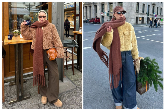 无论你想塑造利落干练的风格,还是飒爽的形象,毛领围巾厚重的质感在颈间环绕,不仅带来实实在在的温暖守护,更让整体风格不由自主地慵懒松弛下来。