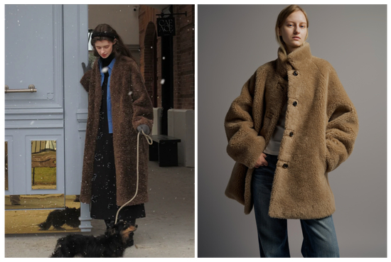 毛绒大衣无疑是冬日氛围的绝佳载体,厚实材质锁住温暖的同时,将季节感完美呈现。摇粒绒特有的蓬松质感,自然而然地烘托出轻松休闲的基调,让整体风格瞬间柔和。