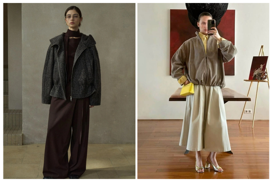 在材质的选择上,多运用视觉或触感上“柔软”的面料,像灯芯绒的肌理感、针织的温柔弹性,以及毛呢的挺括与温暖,将这三种各具特色的软质面料进行巧妙叠搭,不仅能提升穿着的舒适度,更能自然而然地营造出一种带有复古气息的文艺格调。