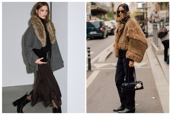 毛绒绒的质感单品,天生就能为整体风格注入一抹温柔与贵气。然而,它的潜力远不止于此。当这份极致的柔美与一丝不羁的野性风格相结合,比如搭配一双皮质长靴,这种刚与柔的对比,让造型在甜美之余,更添飒爽。