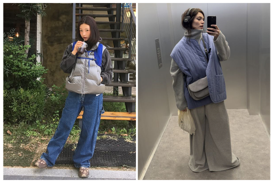 若想在日常活动中保持灵活自如、无拘无束,不妨尝试一下廓形羽绒马甲。相较于修身薄款,如面包般蓬松的廓形设计,在视觉上更显时髦与随性。