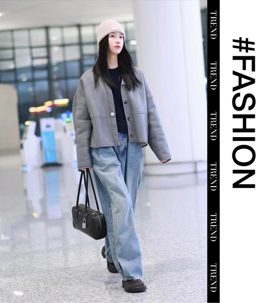 天气越冷,越想穿得“柔软”又舒适,这种Softcore不用追求夸张的戏剧性,视觉色彩温和,纯粹又简练,更是可以营造出不被束缚的慵懒氛围。陈都灵这身以灰调为主的穿搭,自带清冷气场,皮毛一体深V夹克线条利落,与浅蓝色牛仔裤更是形成完美的渐变层次感。