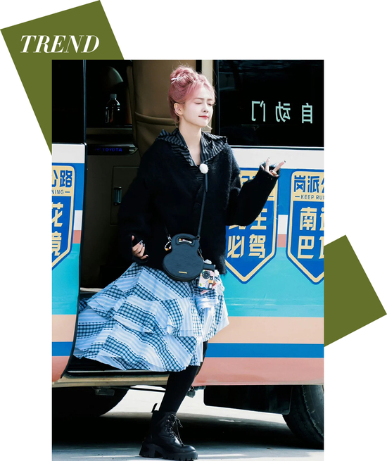 在层次的搭配上,可以选择在厚重与轻盈之间取得平衡,让温暖与呼吸感并存,多选用视觉上或触感上“软”的单品,利用它们自带的温柔滤镜来强化Soft的基调。白鹿这身搭配就平衡得很好,上身选择温暖的针织开衫,确保保暖性,下身则以灵动飘逸的百褶裙打破沉闷,为整体注入轻盈感。