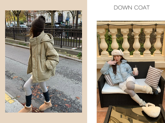 若是搭配中长款或短款羽绒服,还能在瑜伽裤、打底裤外再叠加个针织腿套。既多了一层保暖buff,又能和羽绒服的质感巧妙呼应,轻松避免头重脚轻的穿搭失衡。