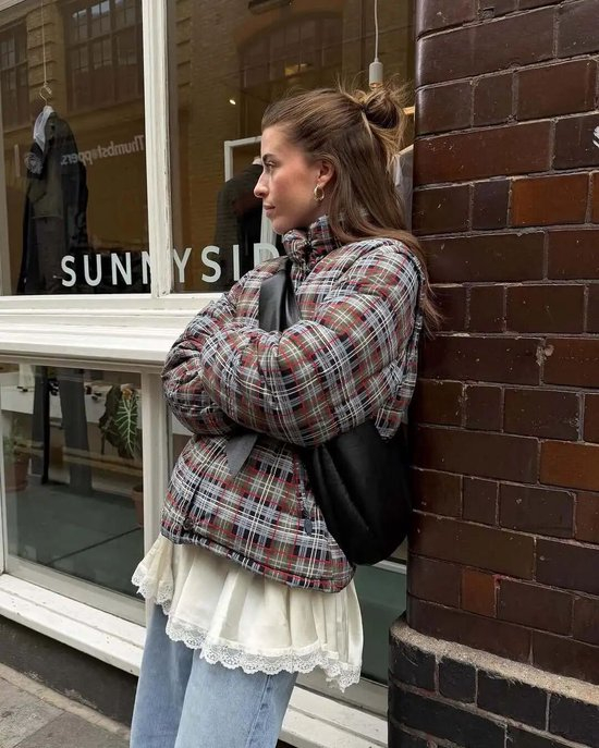 小面积叠搭能让造型瞬间焕新。今年流行的“腰间叠穿”,冬天照样可以继续沿用,把格纹衬衫随意系在羽绒服腰间,既增加了造型的层次感,又透着几分复古韵味。