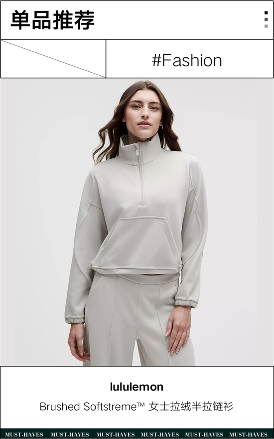 穿得多不如穿得“巧”。lululemon精准贴合冷天出行的需求,推出多款经典人气系列的冬季面料版本。比如李宇春上身的Brushed Softstreme™女士拉绒半拉链衫,运用柔软微绒的Softstreme™拉绒面料打造,自带垂坠质感,拉绒设计足够舒适亲肤。用它作为羽绒服内搭,不用一层又一层的“负重前行”,也能让暖意持续一整天。