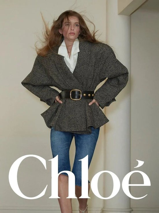 Chloé的创作则更显柔和。在宽肩设计中融入更多自然肩线,收腰处理也更加微妙。带来了更浪漫的解读,软呢或羊毛面料,肩部柔和,腰带一系,勾勒出慵懒而精致的复古曲线。她似乎在寻找一种平衡,介于力量与温柔、男性与女性、过去与现在之间的平衡。