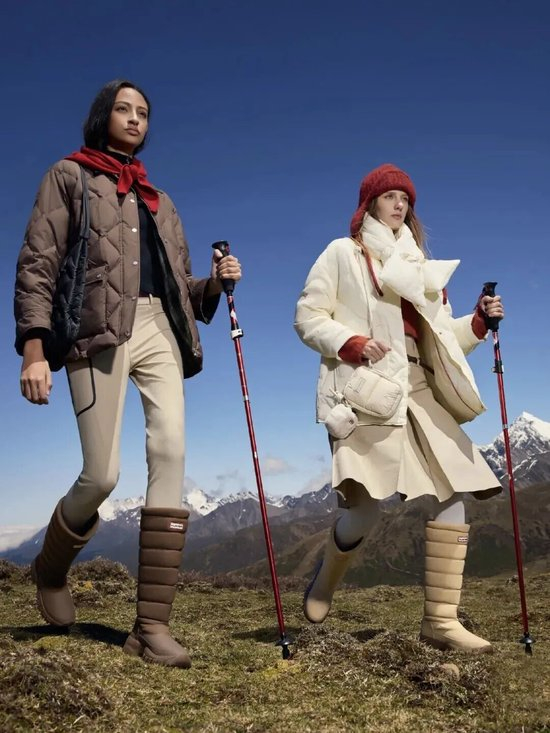 胖胖的外形、毛绒鞋面包裹着脚,既保暖还能“一秒显腿细”。它的灵感来自1969年宇航员登月时的太空靴——超未来感造型+功能性保暖,让它一度成为雪场与城市穿搭的双料选手。绑带设计增强稳定性、防水外层能应对深雪,踩着它走路,仿佛是在进行一场轻盈的太空漫步。