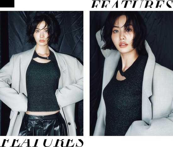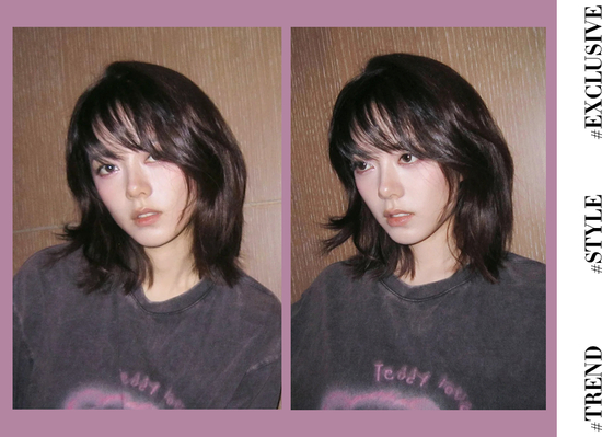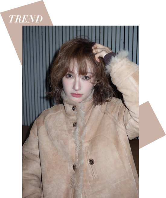 搭配轻薄的空气刘海,颧骨与脸部轮廓被巧妙修饰,在保留锋利感的同时,又让整体氛围不至于过于冷硬。
