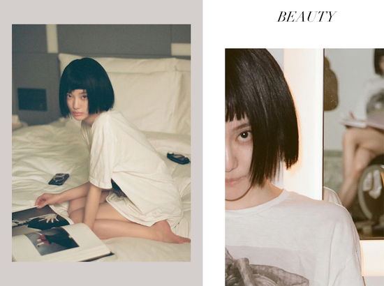 相比之前长发带来的柔软与包裹,超越这次的短发造型,把她的面部轮廓和下颌线完美凸显的同时削弱了皮相的甜美感,有着不拖泥带水的爽利,脆弱但是倔强的气质。