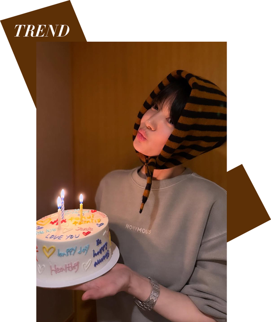 最近刚过完生日的宋慧乔,也是以齐耳短发回归,搭配俏皮的条纹头巾,既搞怪可爱,又带着温柔气息,真是满40减20的神仙状态。