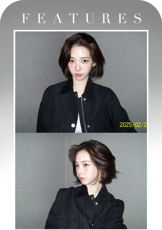 发尾依旧走外翻路线,让造型在利落中保留氛围感,纹理感是关键,因此弧度一定要被清晰地“设计”出来,遵循下宽上窄的结构——一旦全头平均蓬松,体量失控,反而会放大头部。