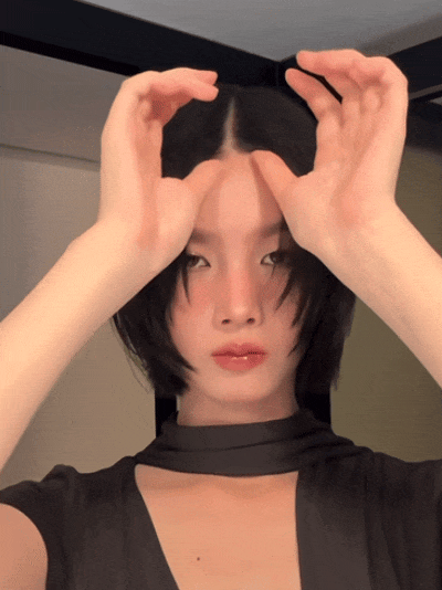 短发强化了她的面部轮廓和下颌线,线条感与层次感被最大化放大,同时又能在不刻意造作的情况下呈现出轻盈、灵动的氛围,让整体造型的辨识度和记忆点瞬间提升。