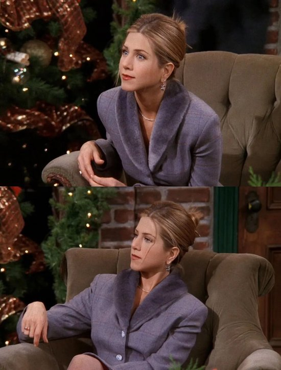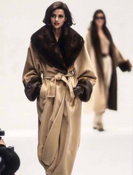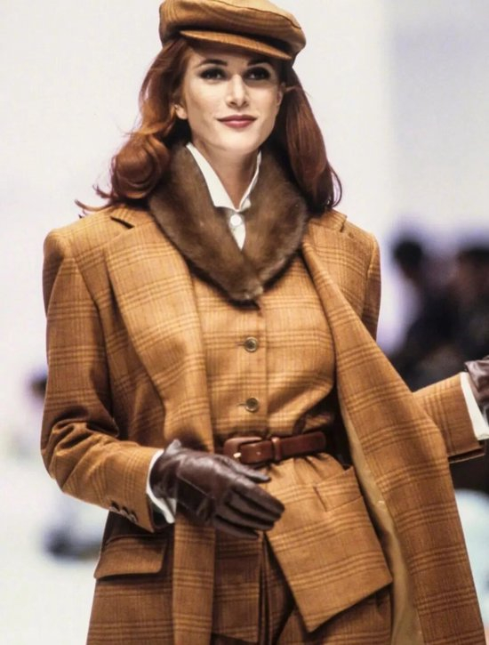 然而,如果将环保皮草毫无节制地覆盖全身,则极易失去精致度和设计感。而经典品牌设计出的古早千金感则深谙此道,“以少胜多,以点缀替代包裹”。如《老友记》中瑞秋的造型所示,一件基础款的呢子大衣,因领口一圈精巧的皮草饰边而瞬间焕发光彩。或者是将一条皮草披肩随意搭在肩头,作为穿搭的点睛。