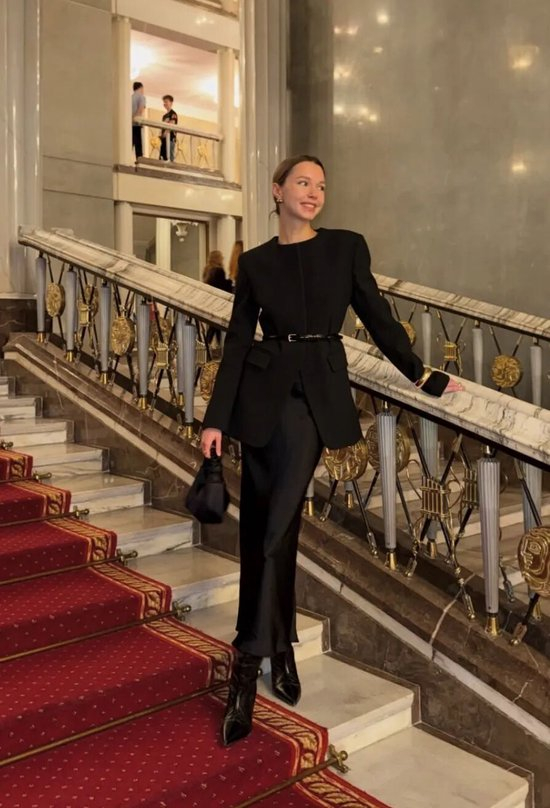 线条的流畅感也是塑造千金感的绝佳法宝。裙摆的弧度、裤腿的垂坠感、大衣的A字廓形,每一根线条都经过深思熟虑。设计感往往藏在细微之处——一道从肩部斜裁而下的公主线,一处精巧的褶皱,或是一个恰到好处的开衩,于简约中暗藏非凡匠心。