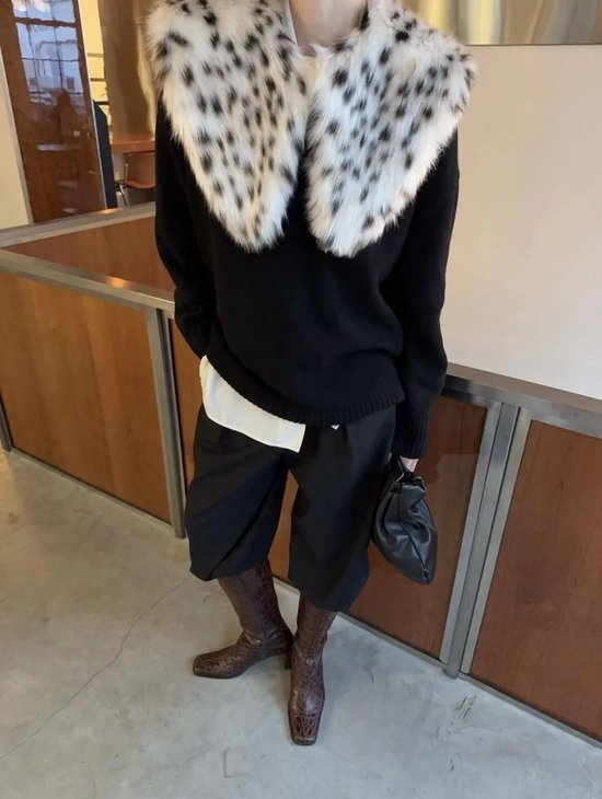 或者是搭配Animal print毛领的毛衣,