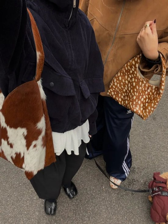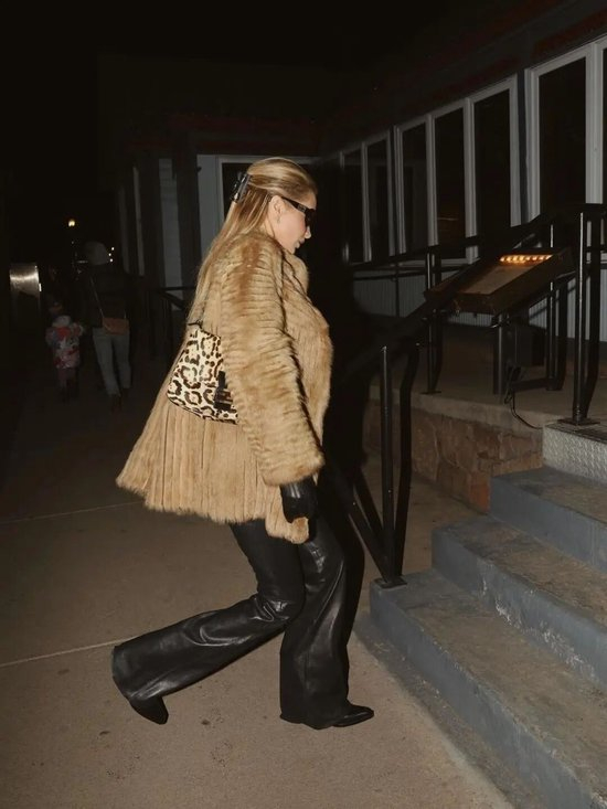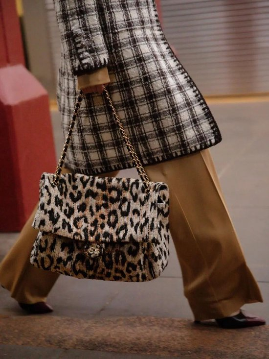 皮草材质的动物纹包包自带暖感,适配冬日大衣;