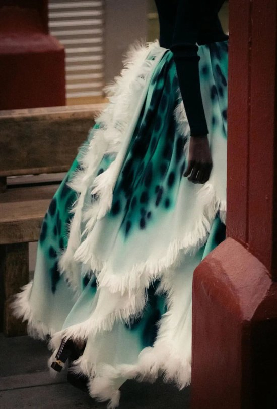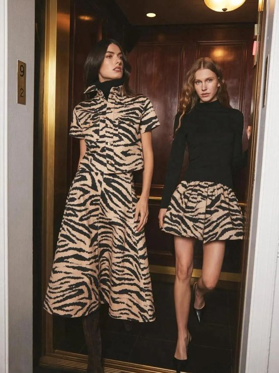 廓形动物纹短裙也是叠穿的优选。