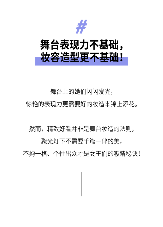 舞台妆造不再是为了单纯的“精致上镜”服务,围绕舞台氛围和歌曲情绪、并最终用于演绎表演者的个人风格。即使妆容会因为投入和热舞而变得不那么完美无瑕,即使发丝会在表演中变得肆意凌乱,但没关系,因为舞台上的姿态不必按部就班,舞台对于她们来说不是展示美的橱窗,而是她们的战场。