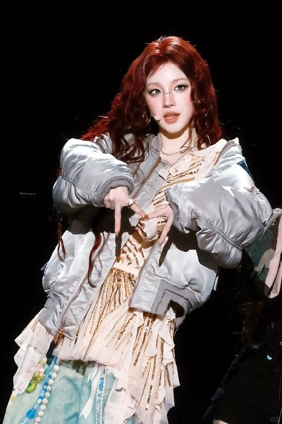 红棕色羊毛卷搭配烟熏妆,野性又张扬。亮片裙和牛仔裤的穿搭思路,既足够吸睛,又打破了“精致好看”的固定框架,舞台服装也可以舒适又闪耀!