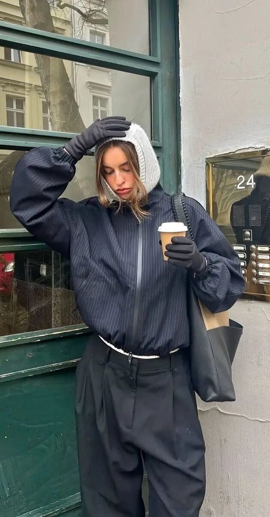 短款竖领风衣夹克,是塑造街头酷感的绝佳单品。挺立的衣领设计感十足,不仅能有效抵御秋风,还能修饰脸部线条,再搭配一顶简约的冷帽,轻松穿出强大气场,飒爽十足。