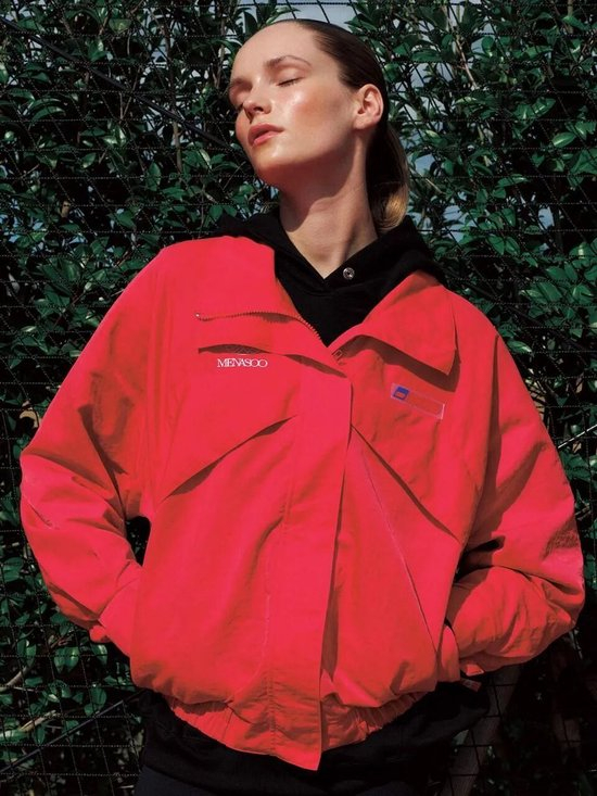 红色的风衣夹克是提亮气色的绝佳单品,深红色还自带复古滤镜,结合廓形利落的剪裁与挺括的立体翻领,让造型变得独特又很简洁。