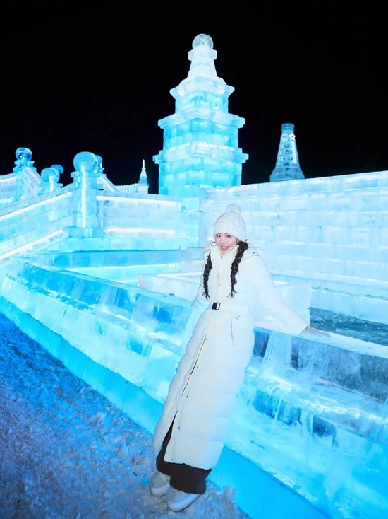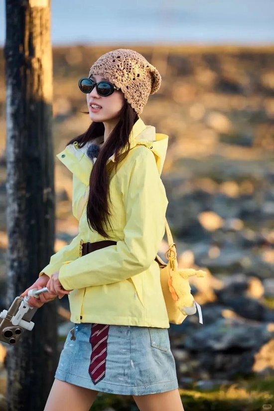 虽然风衣夹克看似很硬挺,但是收腰处也可以通过腰带、抽绳等设计,在厚重面料中依然勾勒出身体曲线。像张雅琪这身造型的巧妙之处,就是在于为风衣夹克系上一条腰带,明确了腰线位置,优化了身材比例,在勾勒曲线的同时,又全无束缚。