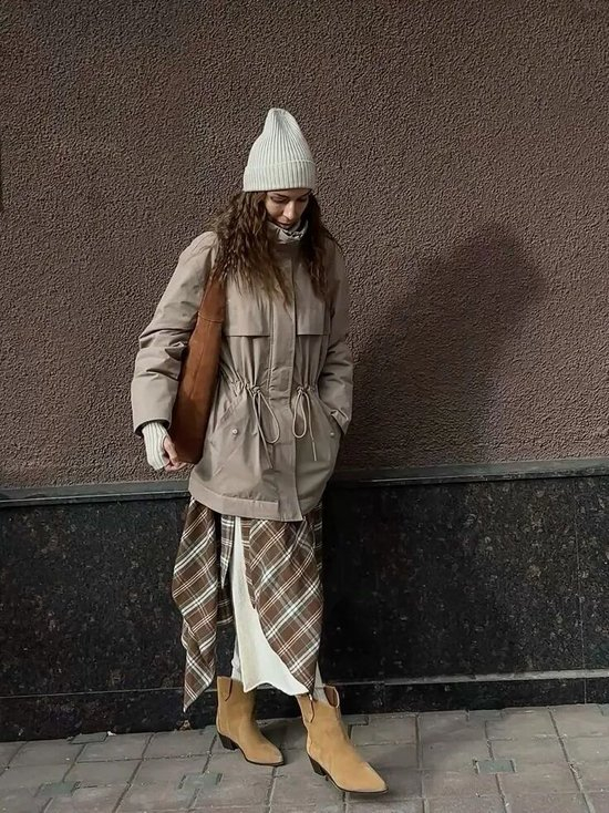 想让风衣夹克脱颖而出,不妨选择带有拼接设计的款式,例如融入格纹的面料,营造出视觉层次与艺术感。此外,一些可爱的立体抽绳、蝴蝶结的细节,也能为这件经典单品注入全新的活力与趣味。