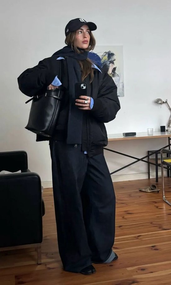 风衣夹克与挺括阔腿裤的搭配,也颇有看点。风衣的洒脱与阔腿裤的磅礴量感相辅相成,裤脚处宽松甚至肥大的设计,为整体造型奠定了坚实有力的分量感,在保证舒适自在的同时,依然能呈现出气场全开的时髦感。