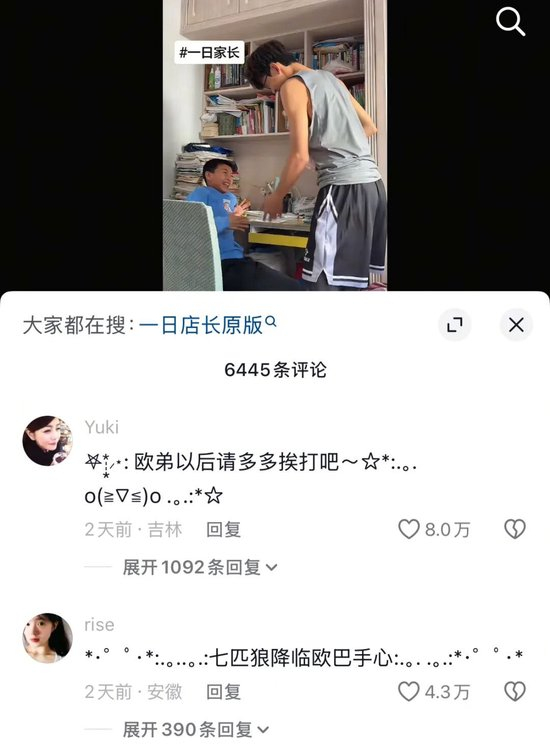 监督弟弟写作业的“一日家长”评论区出现:“孩子觉得痛痛的就会乖乖的”;