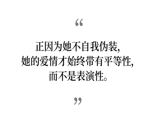 她接受自己的普通、情绪化与不完美,因此不需要通过伪装“更好”来留住对方。也正因为她不自我伪装,她的爱情才始终带有平等性,而不是表演性。