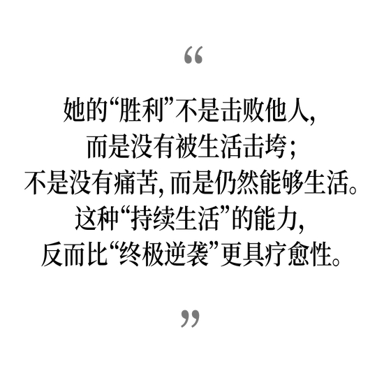 当“强女”叙事不再要求女性温柔顺从,随之而来的是另一种压力,那就是女性被要求强大到近乎无懈可击,在复仇叙事提供的外部正义的完成感中,获得象征性胜利,以此建立爽感。