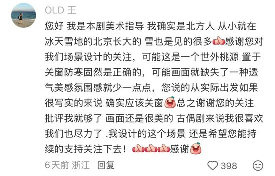 而最令人担忧的是,这似乎是制作团队的“有意为之”。面对观众对画面真实性的质疑,美术指导回应:“画面还是很美的,就古偶剧来说我很喜欢,我们也尽力了。”