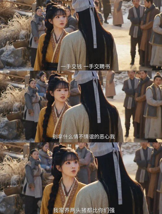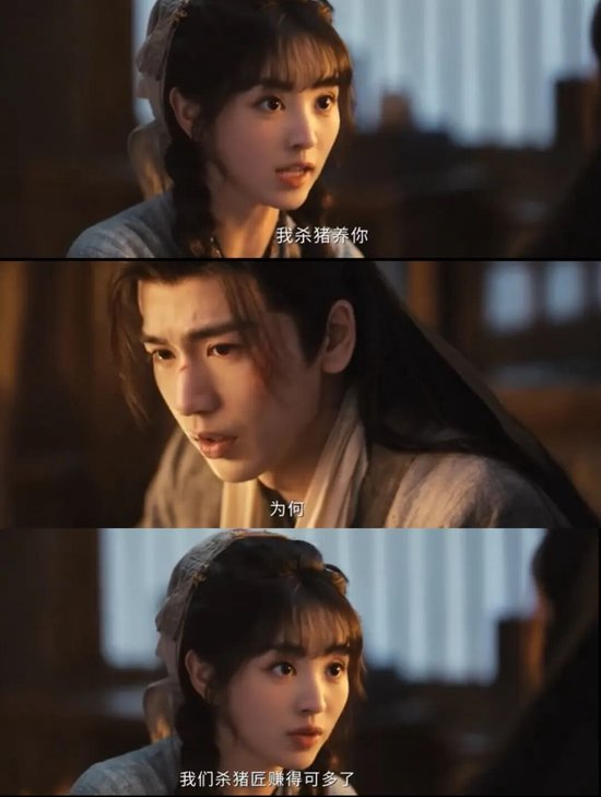 剧集一直在强调女主“杀猪婆”的身份,让她反复说着“我杀猪养你”,让男主作为赘婿入赘,表面上,这似乎是在打破阶级壁垒。