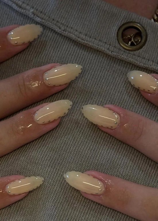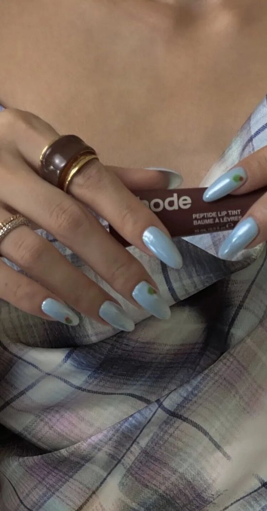 搭配长杏甲片,从指间轻轻晕染开,