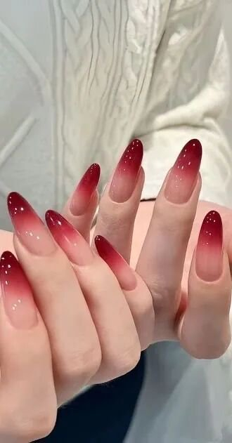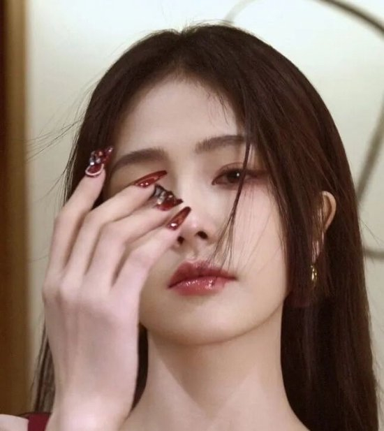 庾晚音严选红色指尖渐变美甲、
