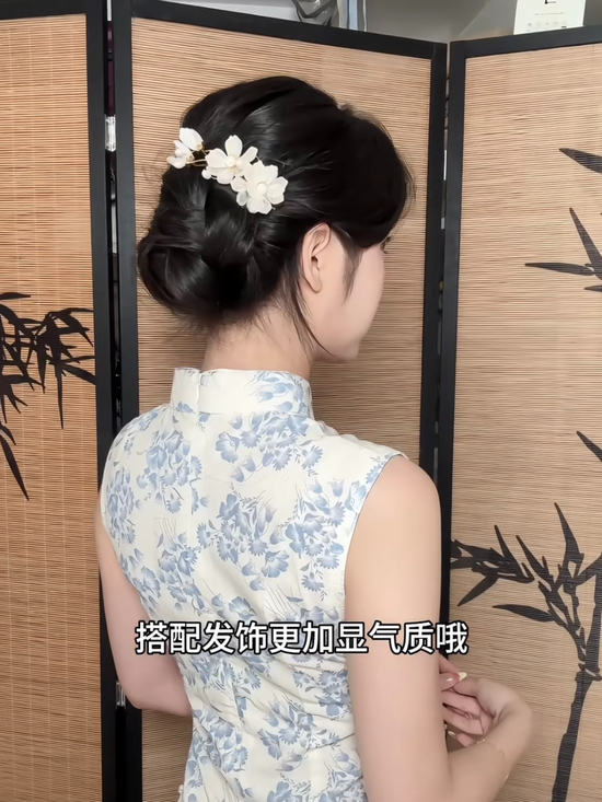 这样一款温柔显气质的旗袍盘发就完成啦~