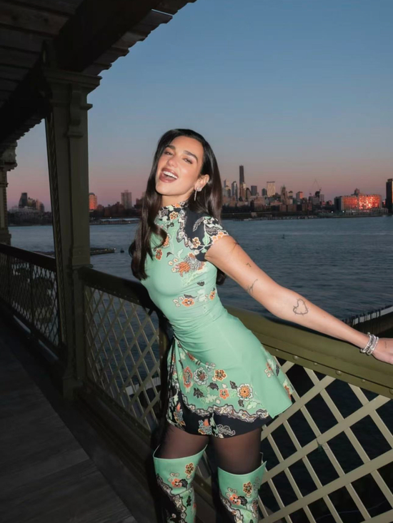Dualipa参加活动的印花旗袍造型搭配了松散微卷发,既保留了东方韵味,又多了几分现代时尚与自在洒脱,东西结合松弛感拿捏。