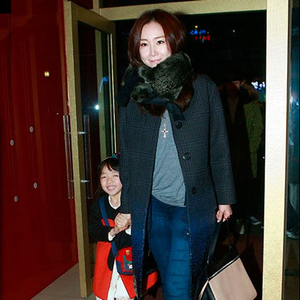 示范搭配:黑色连衣裙+黑色西装外套+黑色打底裤+皮草大衣+厚底短靴+毛绒围巾