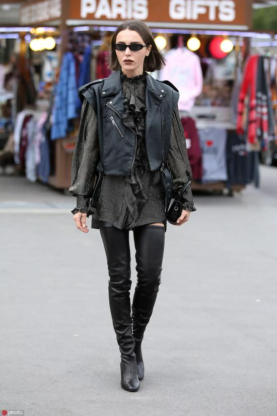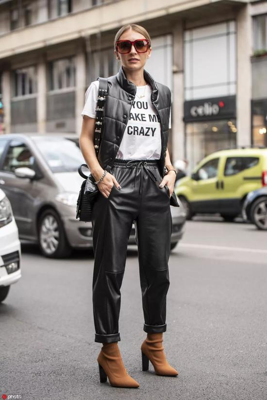 而像是时尚博主Mary Leest身上这款机车风皮马甲