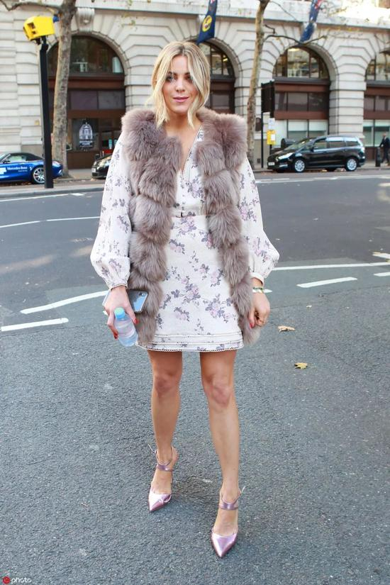 像下面这种泡泡袖连衣裙搭配长款皮草马甲