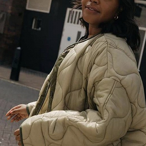实际上,你会发现如果将绗缝棉服的颜色换成较为亮眼的颜色,比如草绿、姜黄时,它会自然地成为整个造型中吸睛的存在。此时,无论是内搭还是外罩其它相近颜色的衣服,能够更丰富地表现一种层次感。