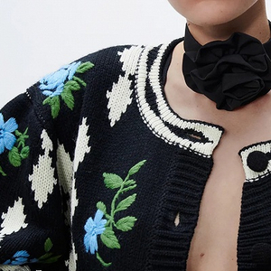 像这样的娃娃领小花毛衣也别具一格,适合打造一些甜美可人的造型。