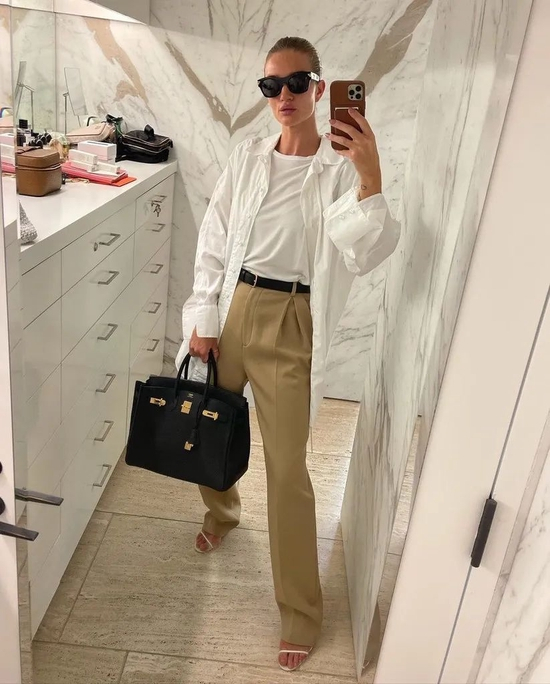 胸前的两个大口袋和自带的腰带组合起来,很有工装风的帅气感,但同时又不会太硬朗,在ins上的曝光率太高了。